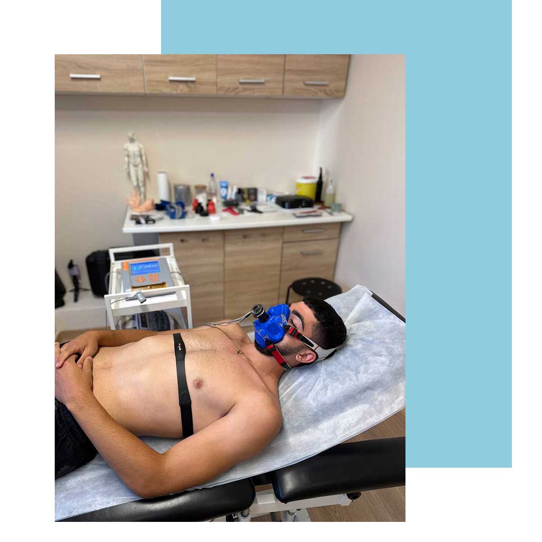 O εξεταζόμενος, κάθεται στο κρεβάτι , εφαρμόζοντας μια ειδική αποστειρωμένη μάσκα στο πρόσωπό, εισπνέοντας και εκπνέοντας σε συνθήκες απόλυτης ηρεμίας για χρονικό διάστημα 12-15 λεπτά περίπου.